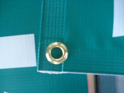 ハトメ部分拡大。今回は縫製ではなく、ウエルダーにて仕上げました。