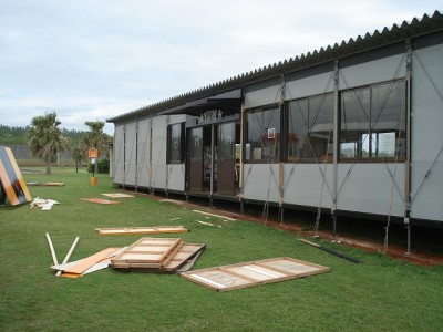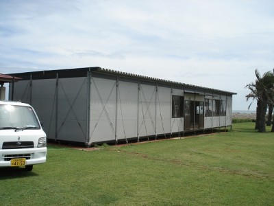 一ツ葉冒険ビーチのプレハブラッピングの撤去